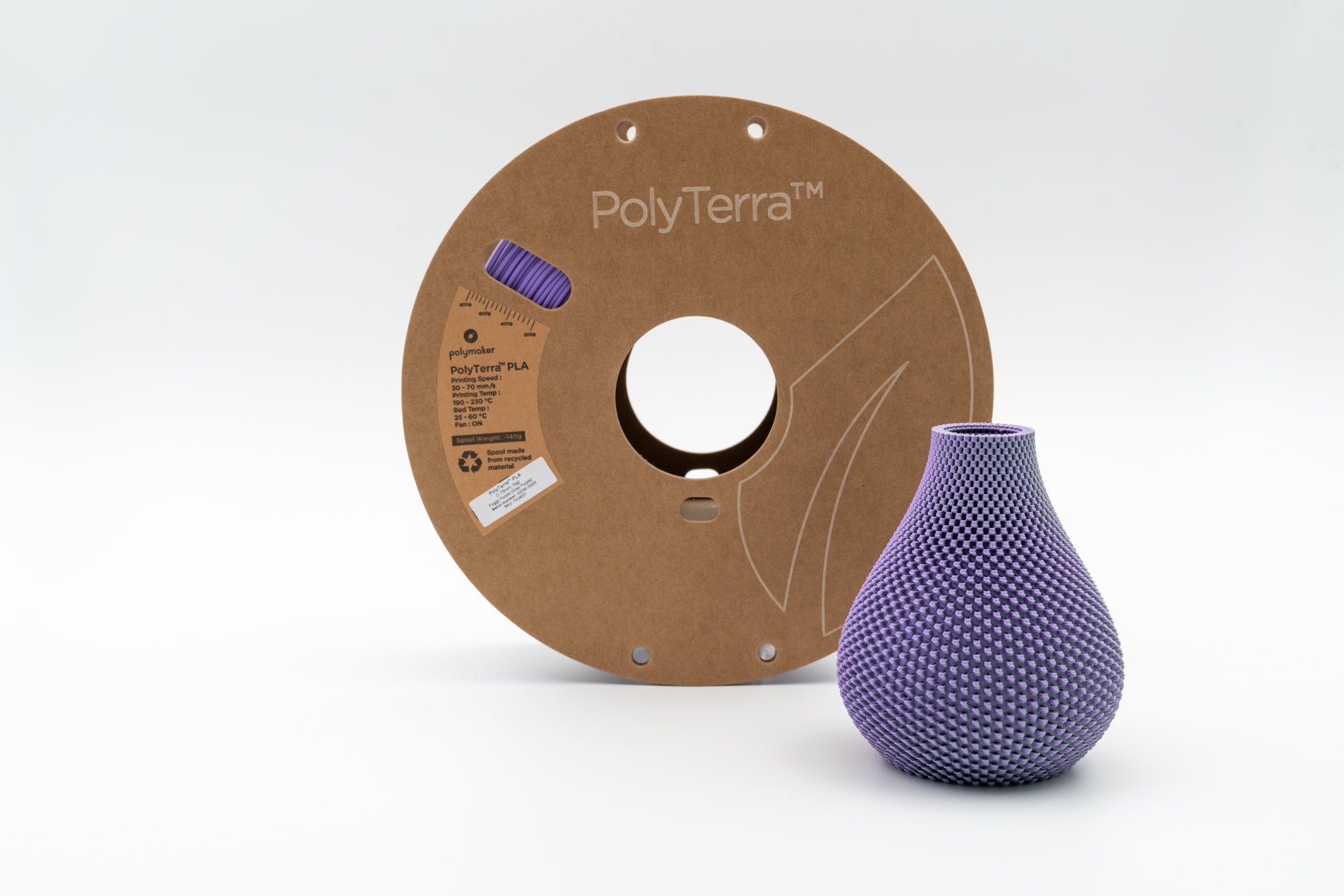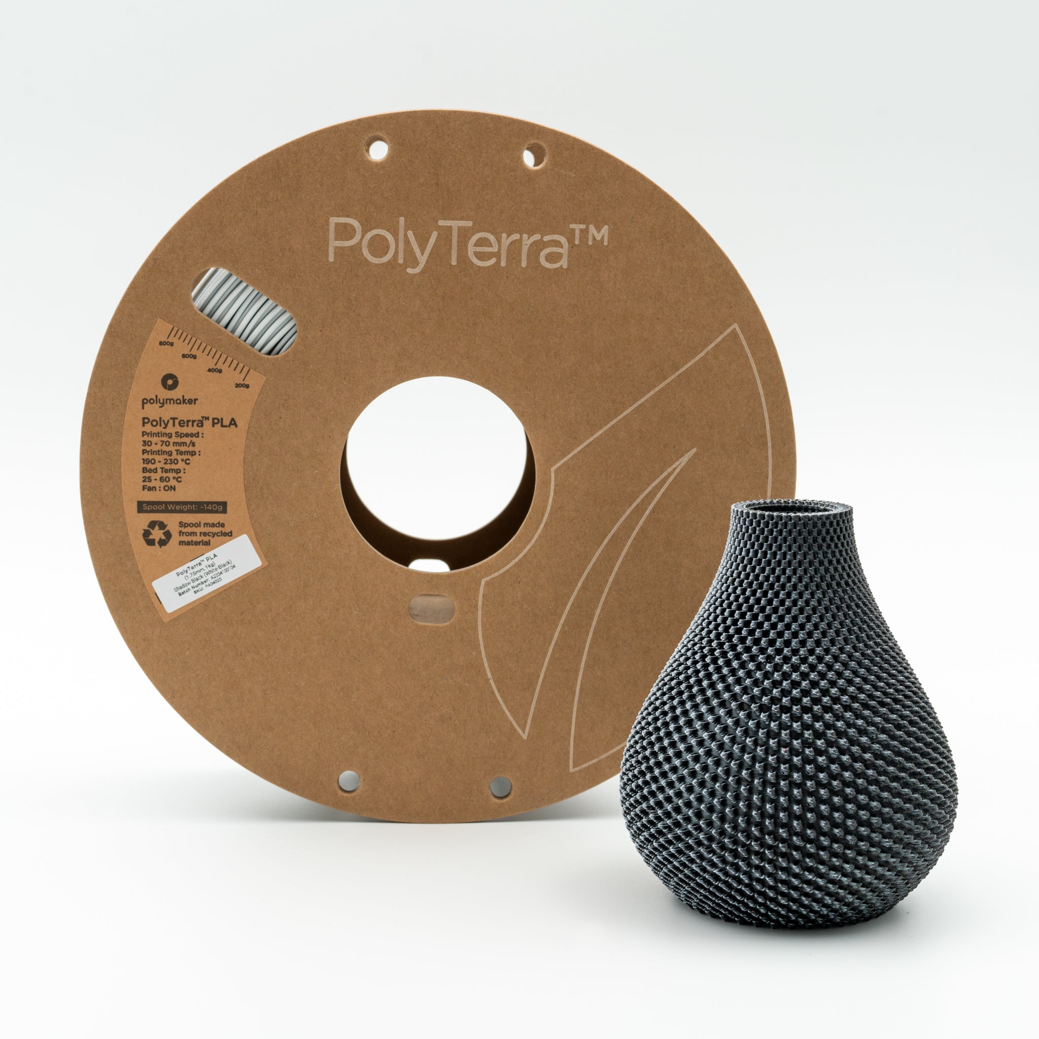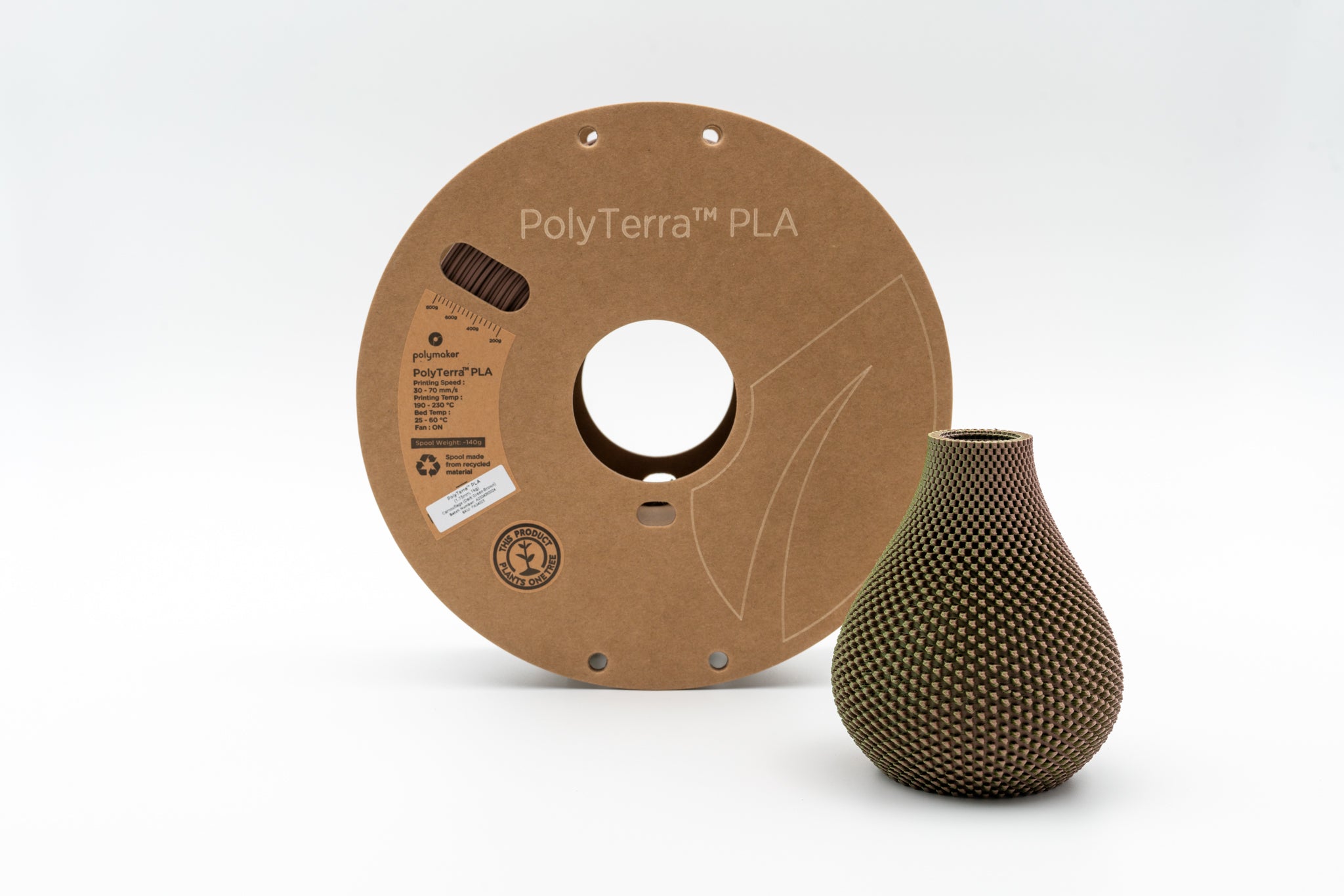 Das PolyTerra PLA ist ein nachhaltiges Produkt aus biologisch abbaubaren Komponenten. Spule und Karton werden aus recycelten Material hergestellt und zusätzlich wir für jede produzierte Spule ein Baum gepflanzt in Cooperation mit